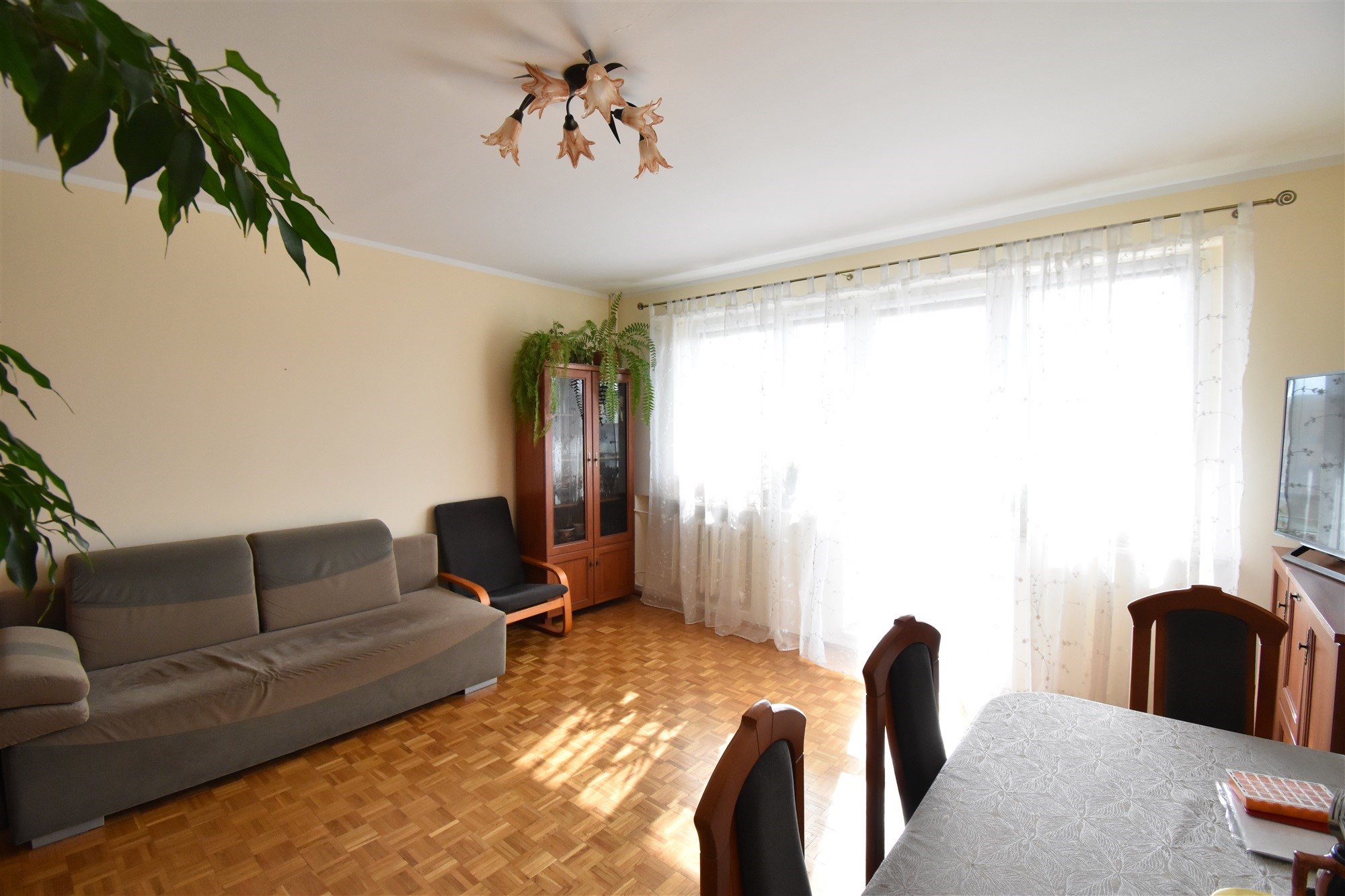 Salon jest przestrzenny i dobrze doświetlony - ekspozycja na południe. Dodatkowo balkon typu loggia z widokiem na plac zabaw zapewnia dobry nadzór nad bawiącymi się dziećmi daje poczucie bezpieczeństwa. Również na podwórku jest stół do ping-ponga.
