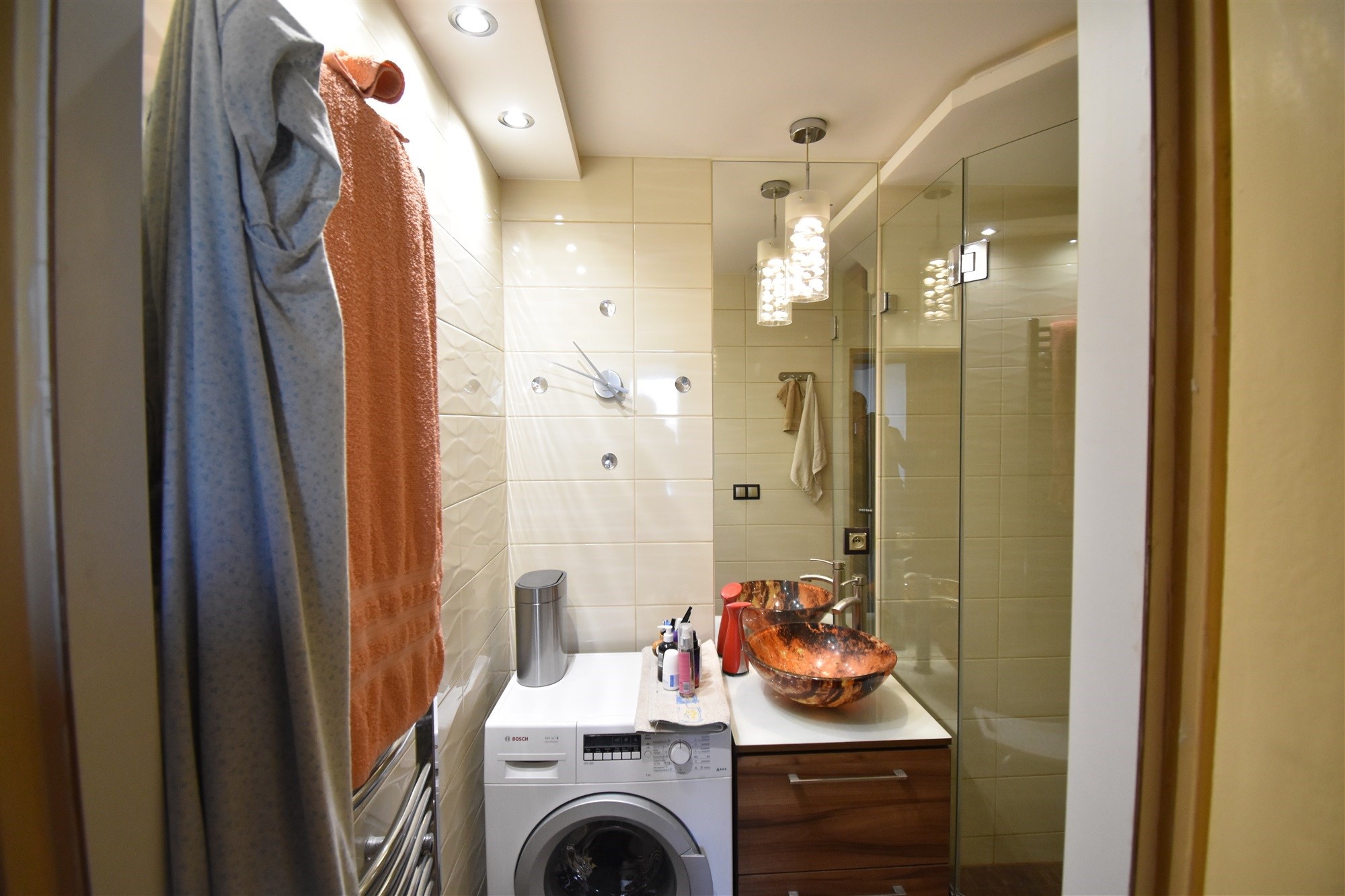 Do zaprojektowania łazienki i toalety została zatrudniona ceniona projektantka, dzięki czemu czuć nowoczesność i przestrzeń.