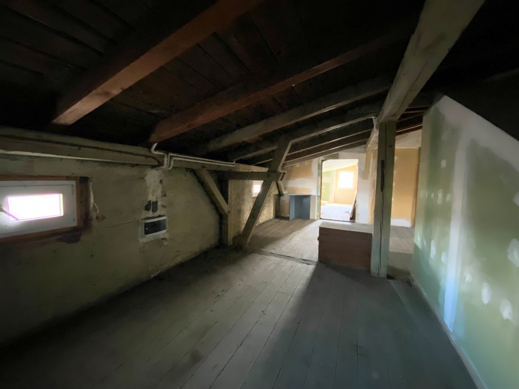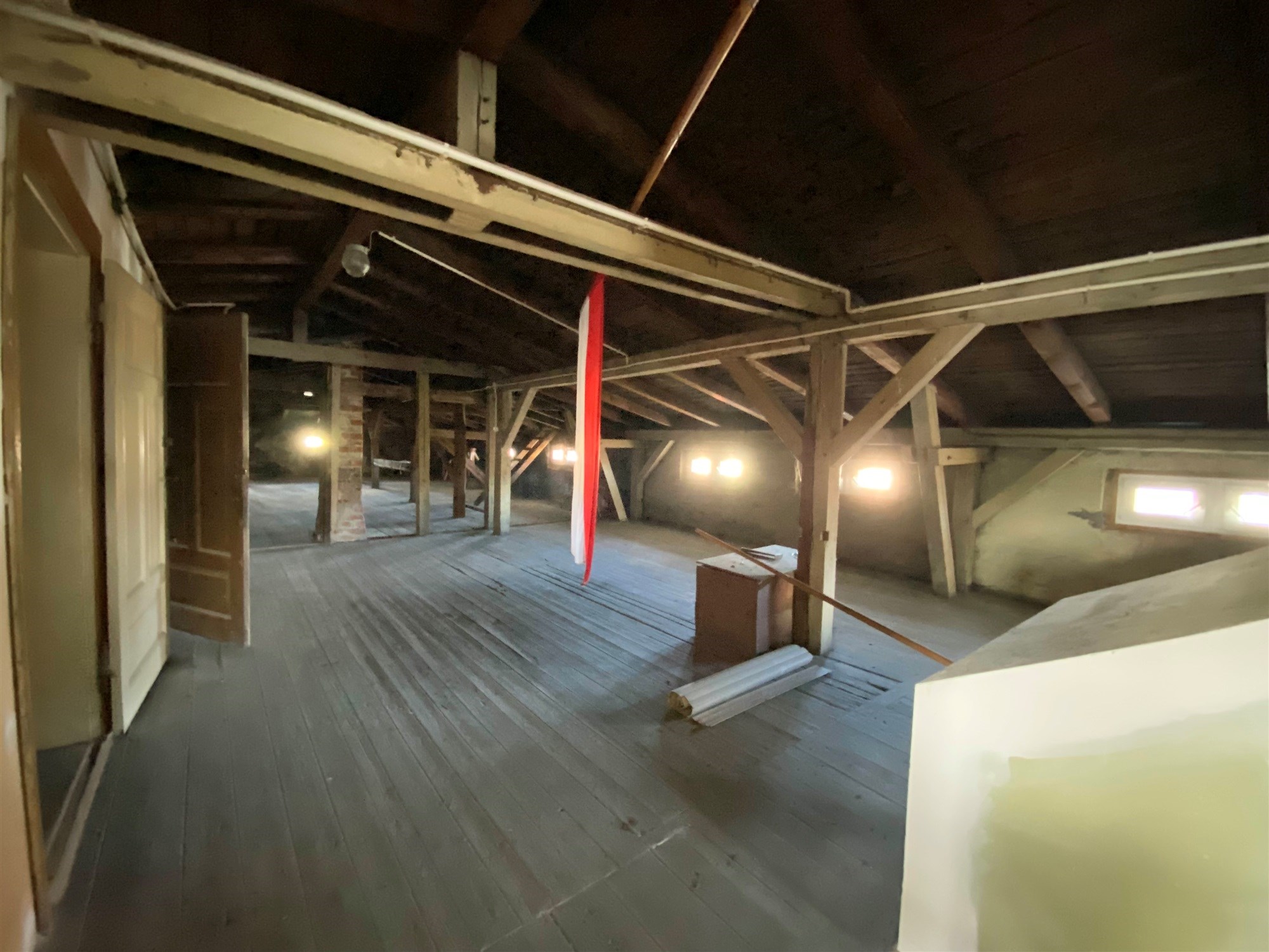 - duży strych, częściowo mieszkalny o powierzchni ponad 230m2 (wysokość od 1,75-2,4m)
