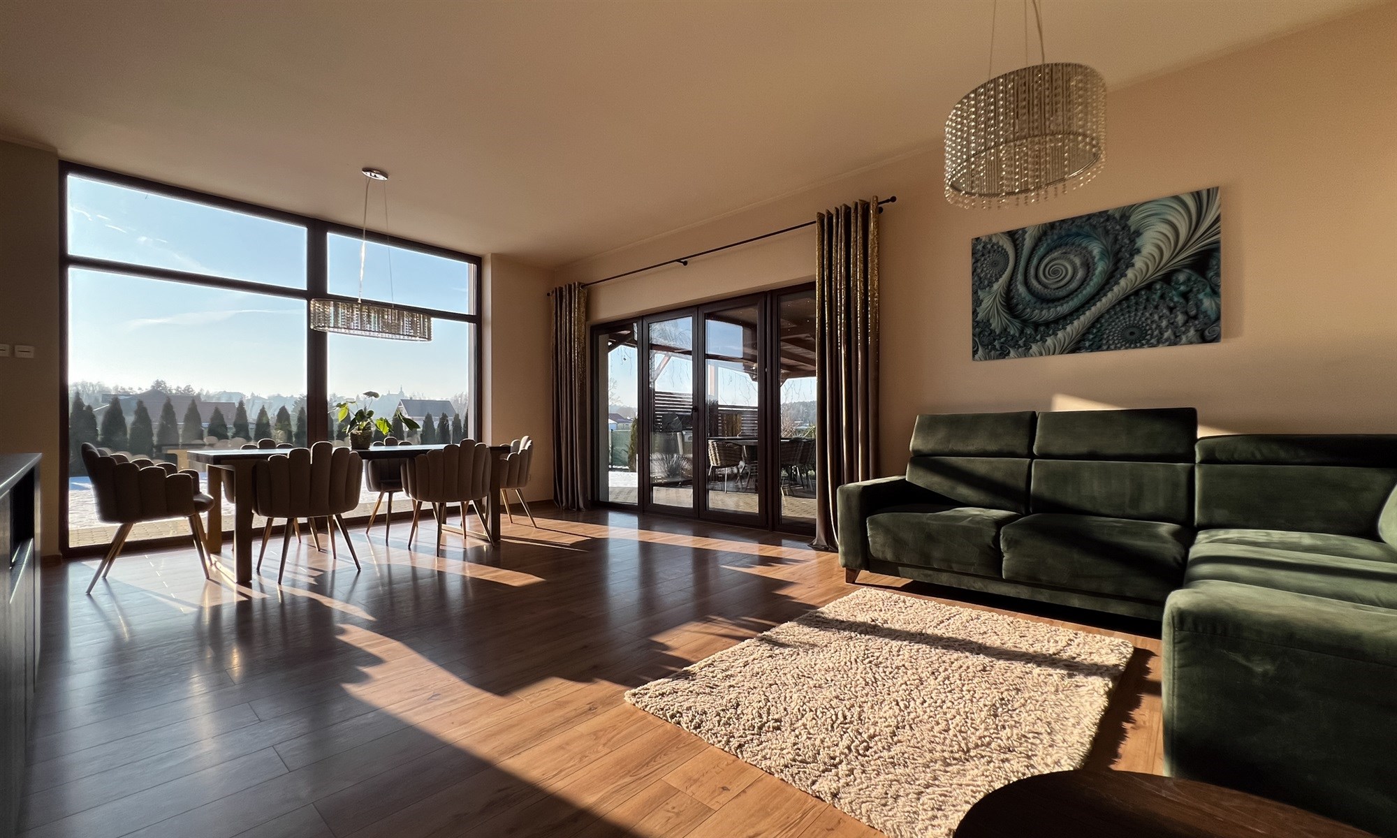 - salonu - ogromnym atutem są duże okna, tworzące fantastyczną przestrzeń w salonie