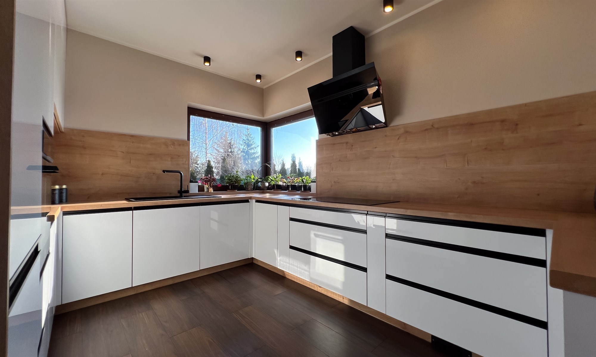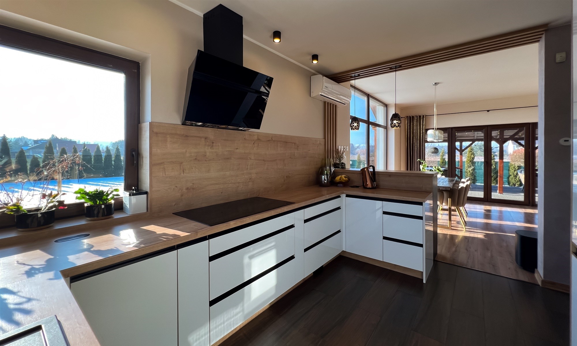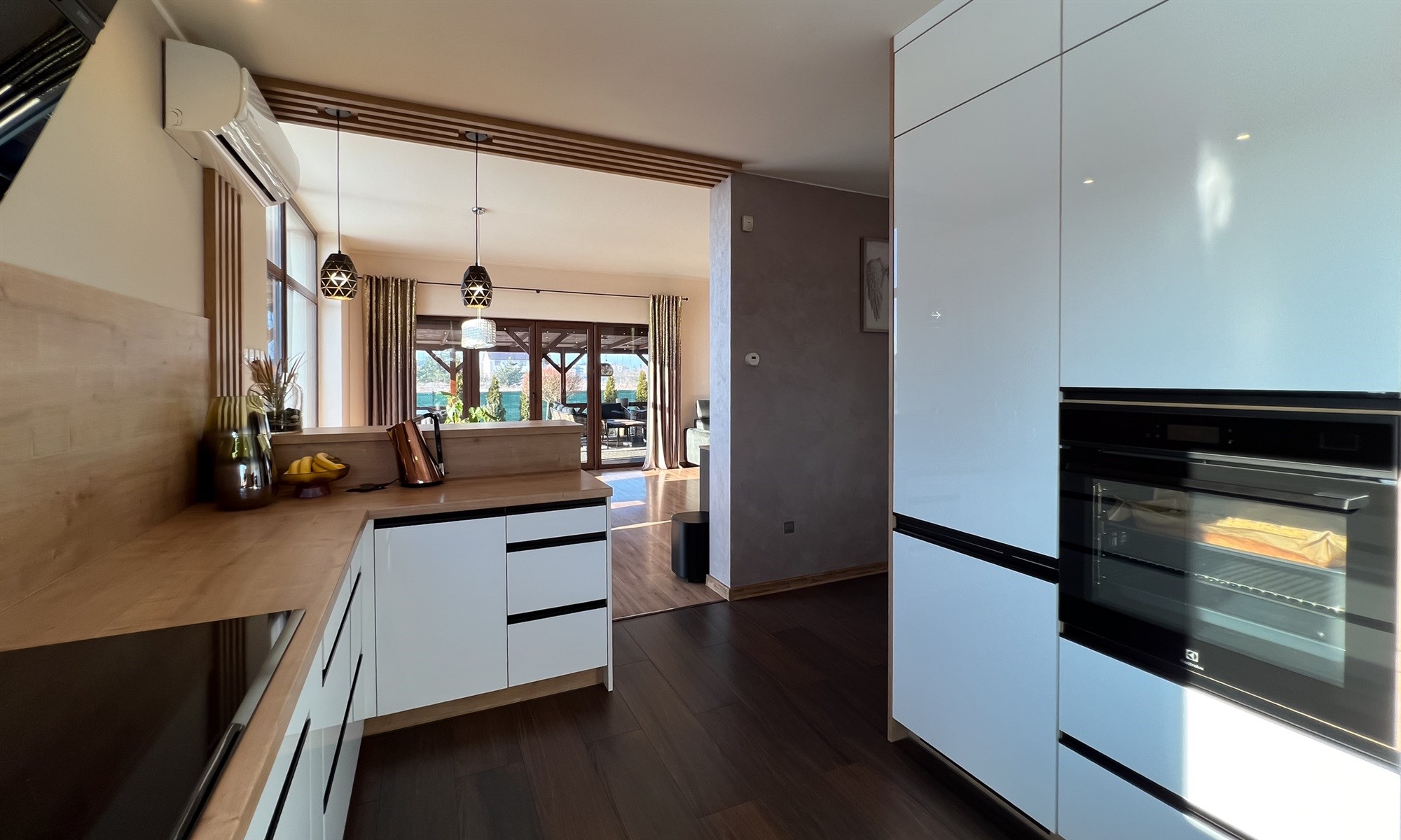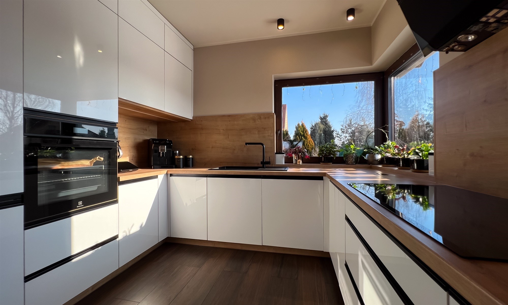 - nowoczesnego i praktycznego aneksu kuchennego z dużą ilością blatu roboczego