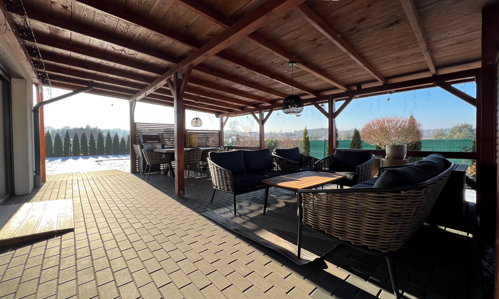Dom oraz przestrzeń wokół tworzy bardzo gustowną i spójną przestrzeń. Można się tu po prostu dobrze czuć :)
