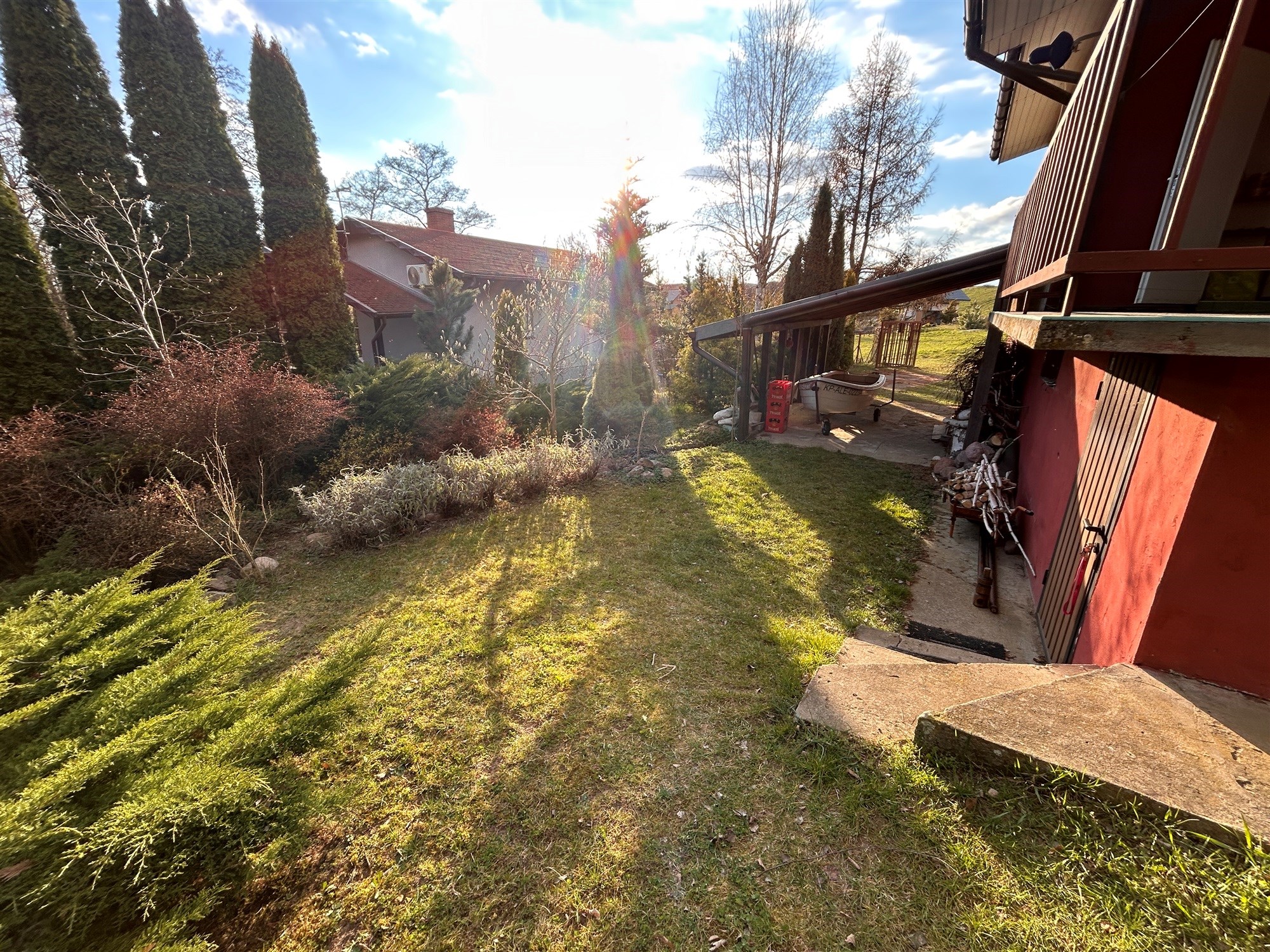 | ukształtowanie działki | lekko nachylona |