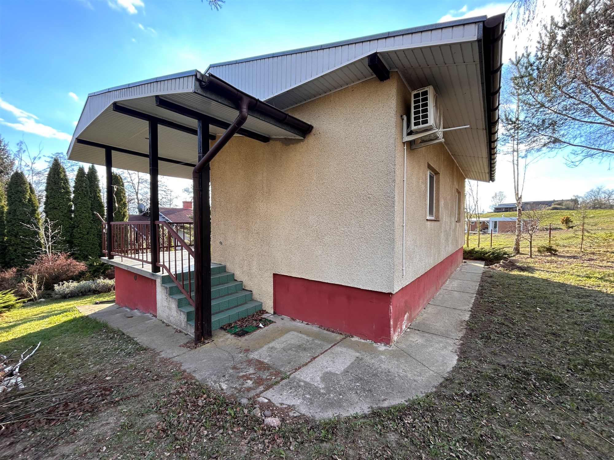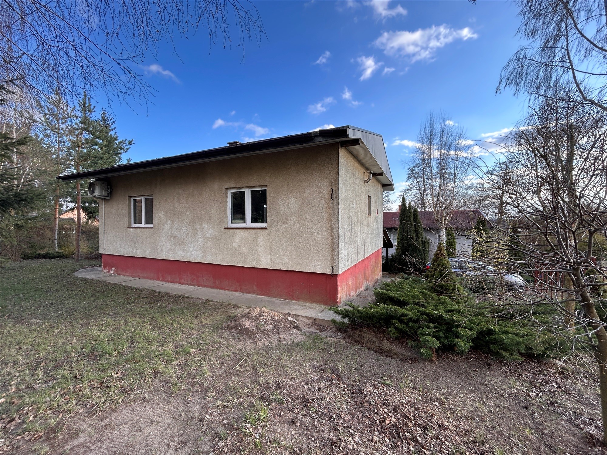 Nieruchomość jest przygotowana do użytkowania przez cały rok – wyposażona w sprawną klimatyzację z funkcją grzania. Dach pokryty jest szczelną papą, a pod budynkiem znajduje się częściowo zagospodarowana piwnica, zapewniająca dodatkową przestrzeń do przechowywania. Komfort użytkowania zwiększa również szambo o dużej pojemności – 24 m³. Nieruchomość wymaga odświeżenia w zależności od indywidualnych potrzeb nowego nabywcy.