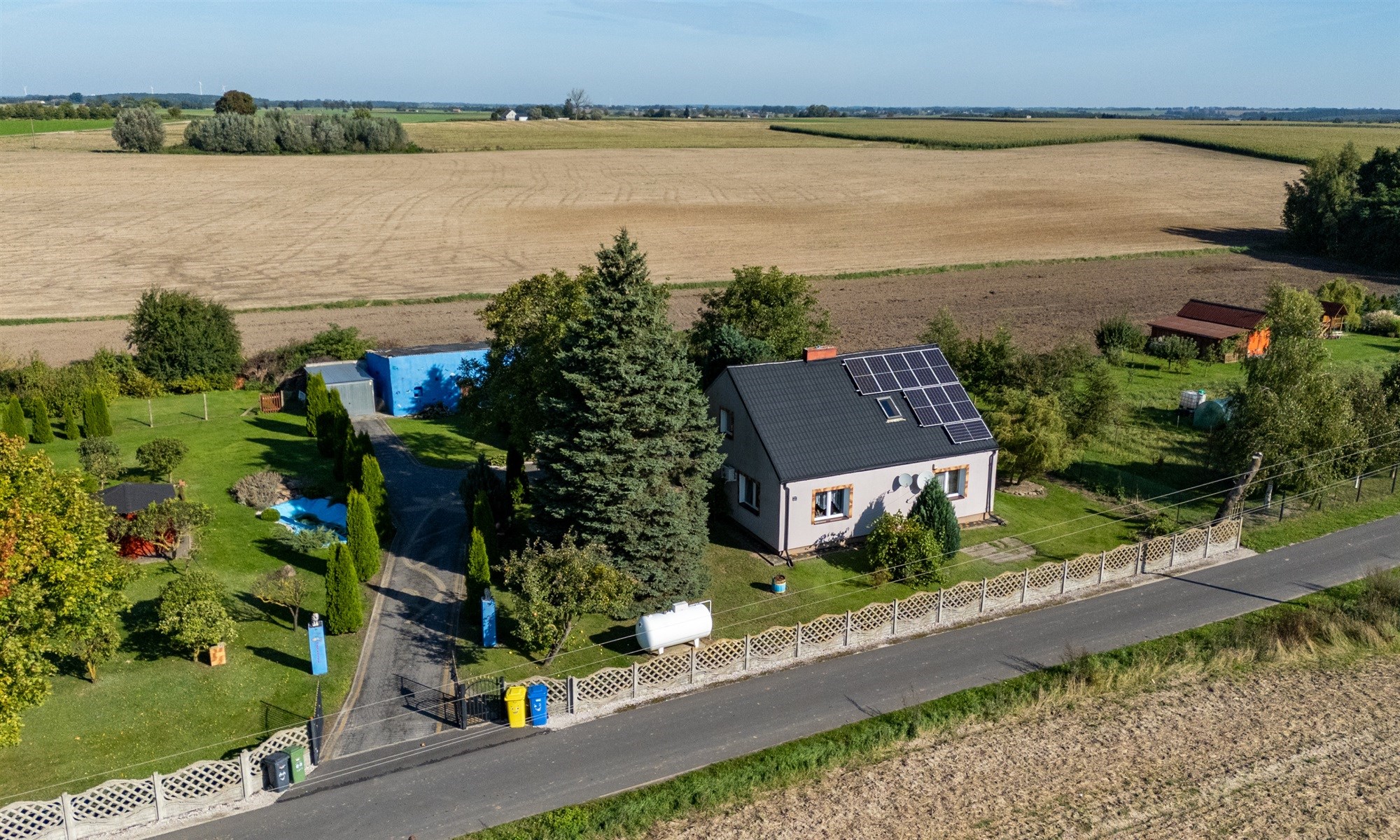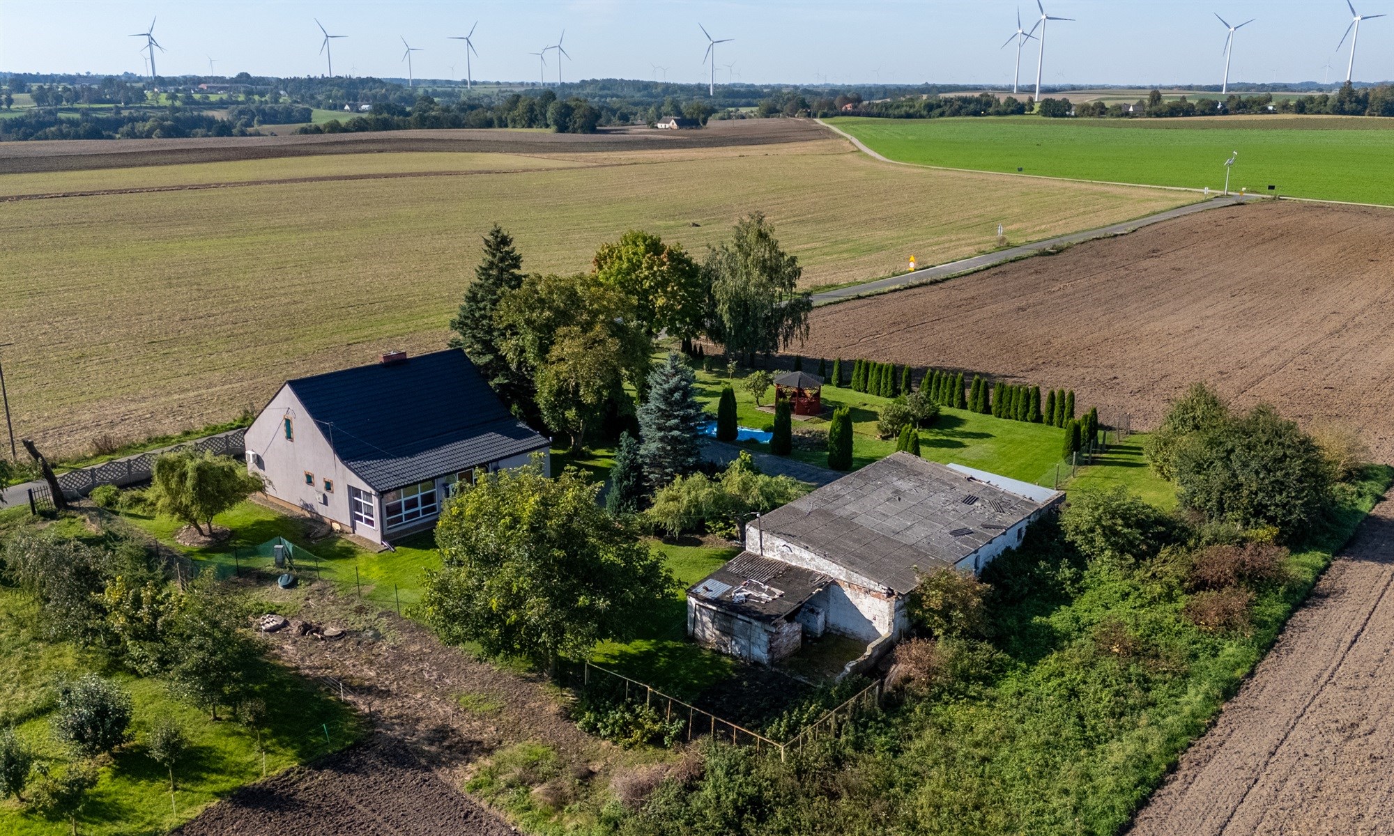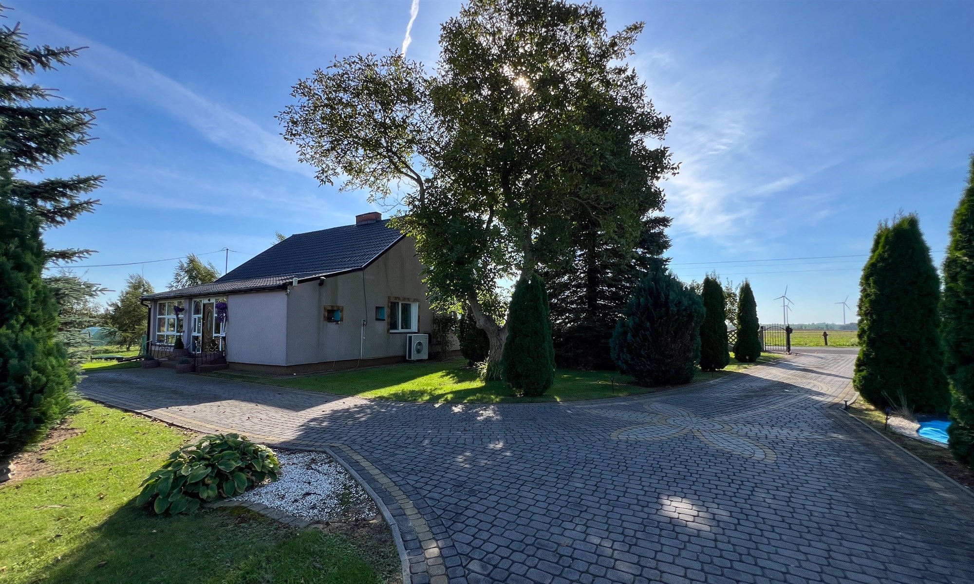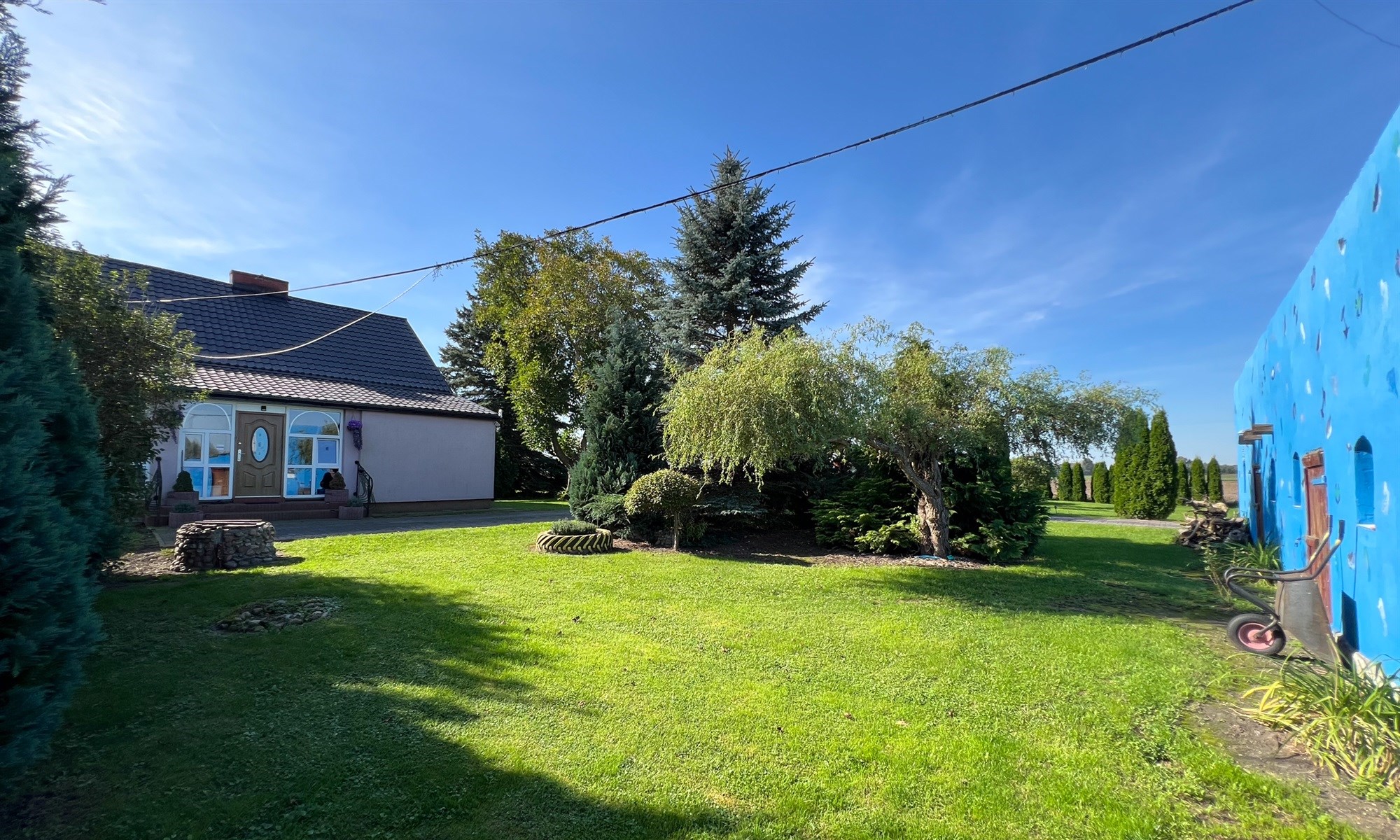 Działka o powierzchni 3013 m² została w całości ogrodzona i urządzona tak, aby była funkcjonalna i estetyczna. Przed domem znajduje się podjazd wyłożony kostką, a obok murowany budynek gospodarczy oraz blaszany garaż. Dopełnieniem klimatu są drewniana altana i oczko wodne, które tworzą idealną przestrzeń do relaksu. Na terenie znajduje się również stara studnia głębinowa – świetne źródło darmowej wody do podlewania ogrodu. Nie zabrakło miejsca na własny ogródek warzywny, a duża przestrzeń działki daje ogromne możliwości rekreacyjne.