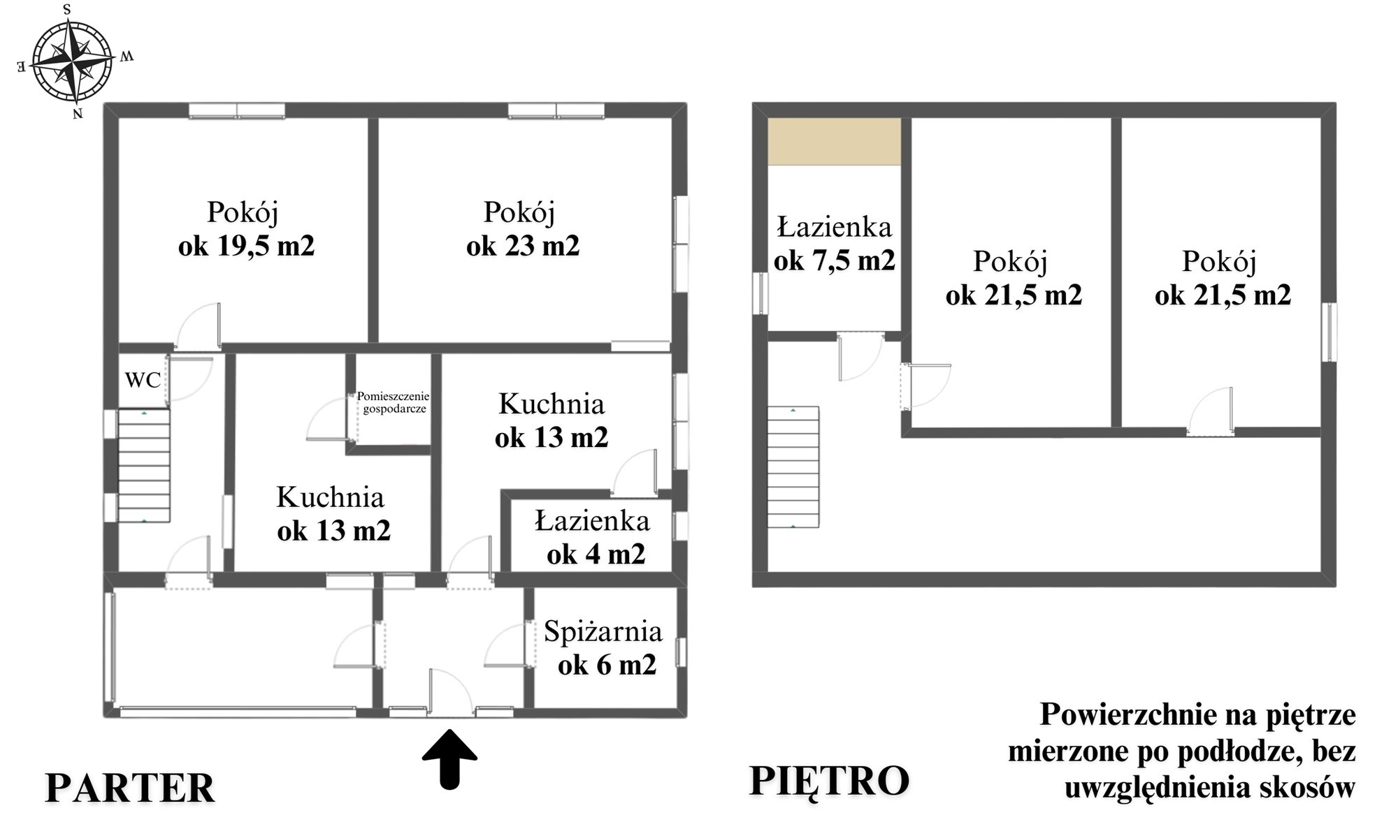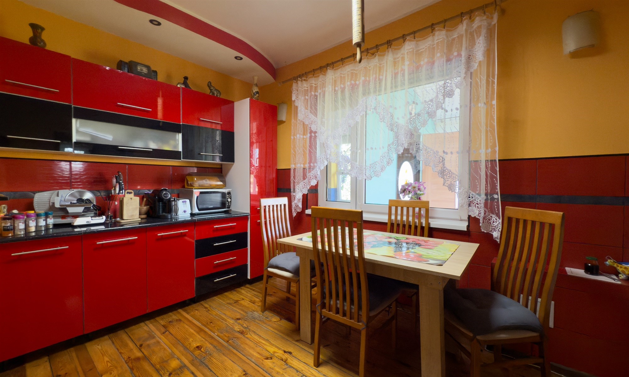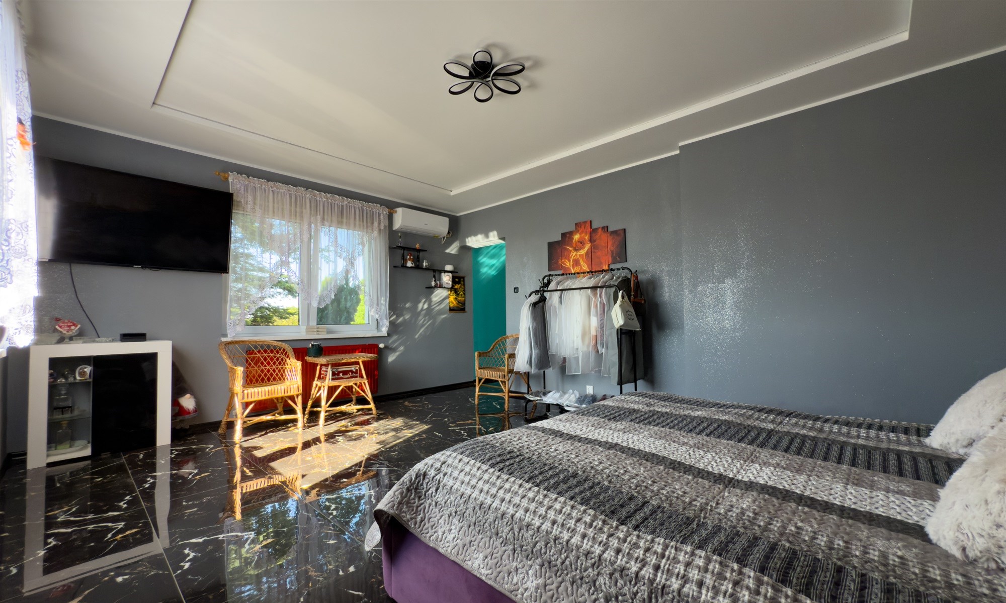 Dom o powierzchni ok. 190 m² (powierzchnia liczona po podłodze). W galerii znajduję się dokładny układ pomieszczeń. Dom przeszedł w ostatnich latach gruntowny remont, dzięki czemu jest gotowy do zamieszkania od razu, bez dodatkowych nakładów. Nieruchomość została podzielona na dwie niezależne części, każda z osobnym wejściem – idealne rozwiązanie dla rodzin dwupokoleniowych lub dla osób chcących część domu wynająć. Istnieje także możliwość przywrócenia pierwotnego układu. Wnętrza są w bardzo dobrym stanie, a dom dostępny jest z pełnym wyposażeniem, co oznacza, że od razu można tu zamieszkać.
